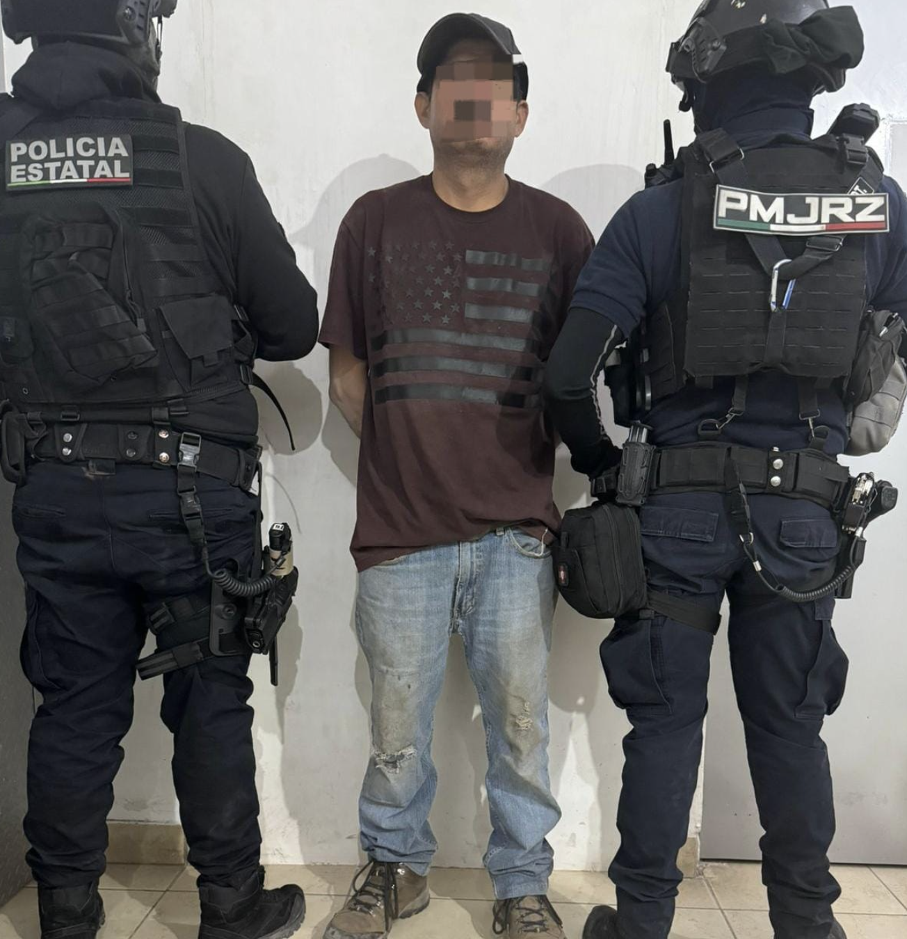Jerez, Zac., 18 de enero de 2024.- Fuerzas de seguridad de Zacatecas que se desplegaron en Jerez debido al reporte de detonaciones en la colonia Zaragoza, detuvieron a dos personas por su probable responsabilidad en el delito de lesiones y por la posesión de un arma de fuego.