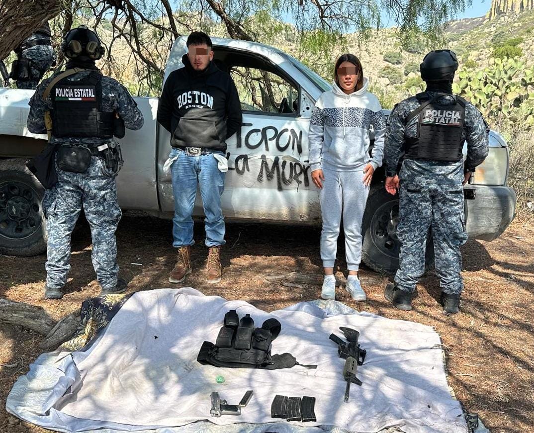 Por lo anterior, se procedió con la detención de las dos personas, mismas que fueron identificadas como Diana Carolina N., de 21 años de edad y Edgar Daniel N., de 28 años, quienes señalaron ser integrantes del grupo delincuencial denominado Cartel Jalisco Nueva Generación.
