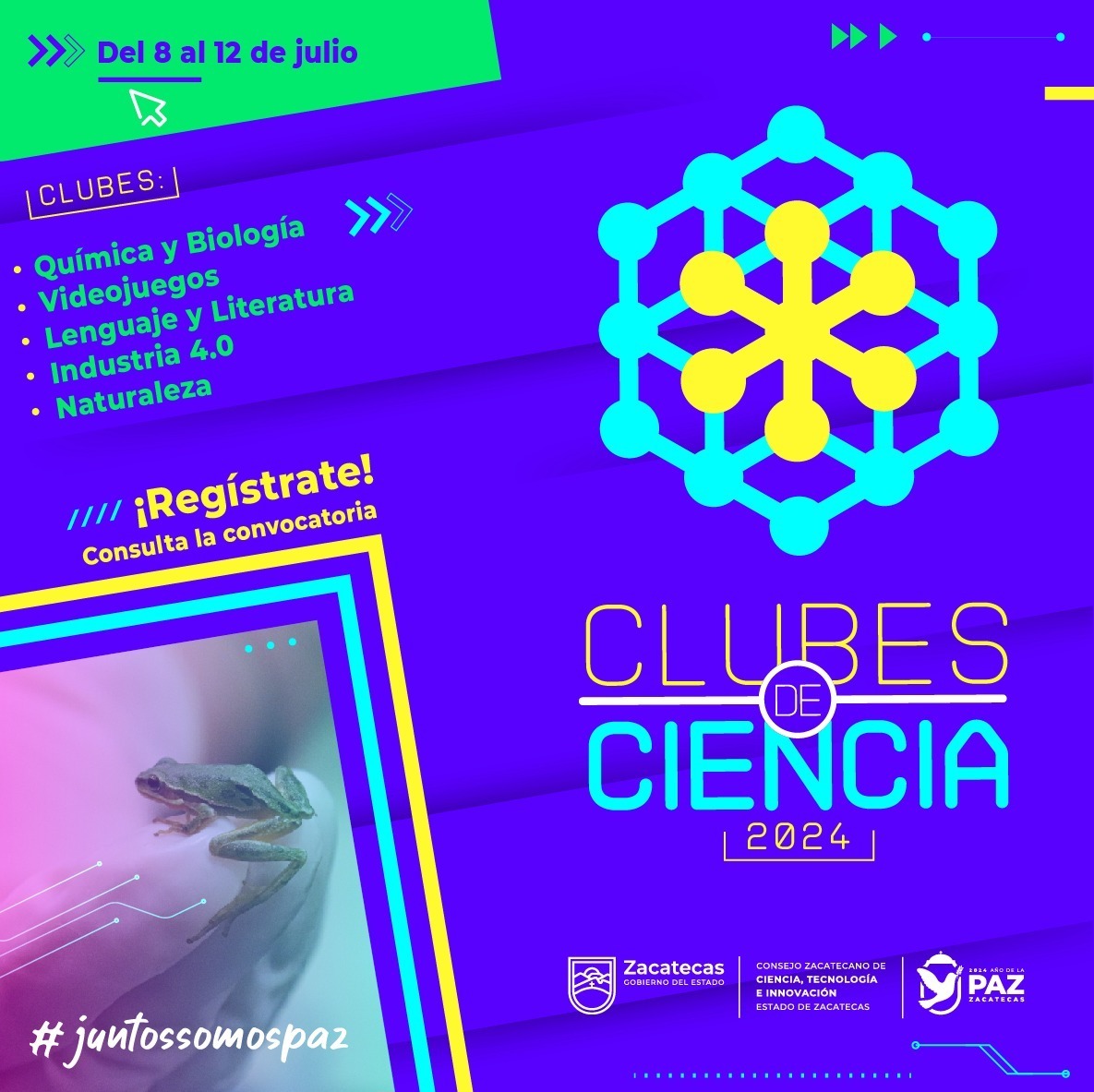 Como parte de las acciones que realiza en el marco de la Agenda de la Paz, el Cozcyt pone a disposición de este sector de la población sus instalaciones para que, del 8 al 12 de julio próximo, participen en actividades relacionadas a las Humanidades, la Ciencia, la Tecnología y la Innovación, con perspectiva de género y con enfoque ecológico y de responsabilidad social.
