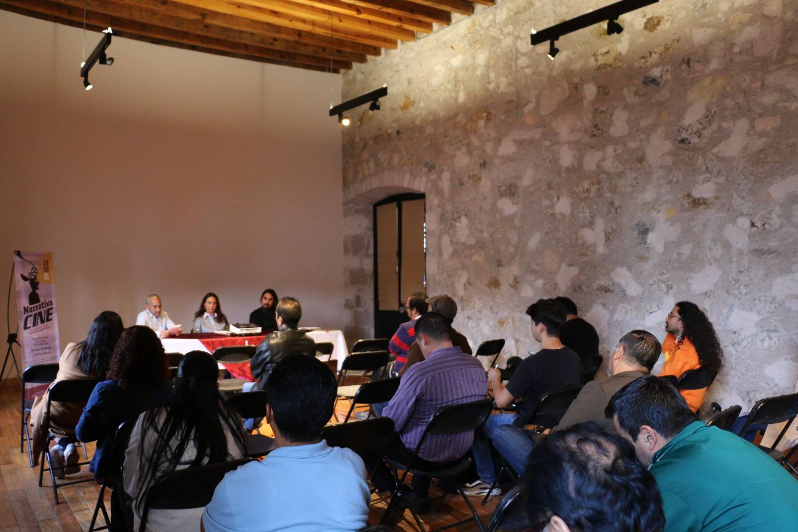 A lo largo del día se desarrollaron tres mesas de diálogo, que reunieron a creadores de diversas disciplinas y estados. En la primera, titulada Narrar y dirigir, Juan José Antuna Ortiz, de Durango, y Armando Andrade, de Aguascalientes, conversaron sobre las correspondencias entre la dirección cinematográfica y la escritura narrativa, moderados por Héctor Gutiérrez Acevedo.