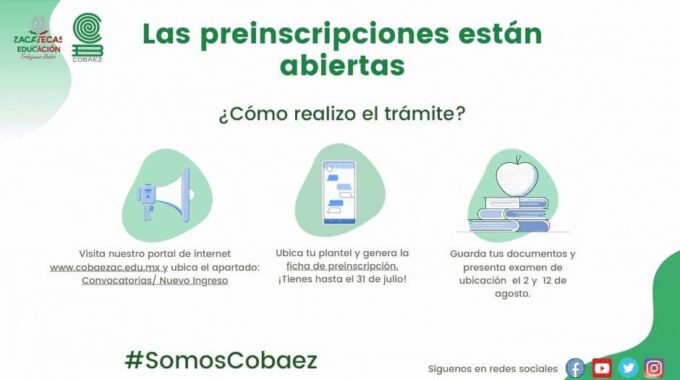 Zacatecas, Zac.- El Colegio de Bachilleres del Estado de Zacatecas (Cobaez) abrió el proceso de preinscripción para estudiantes que hayan terminado o estén cursando el tercer grado de secundaria y que deseen continuar con su educación media superior, en la modalidad bachillerato general, en el ciclo escolar 2021-2022.
