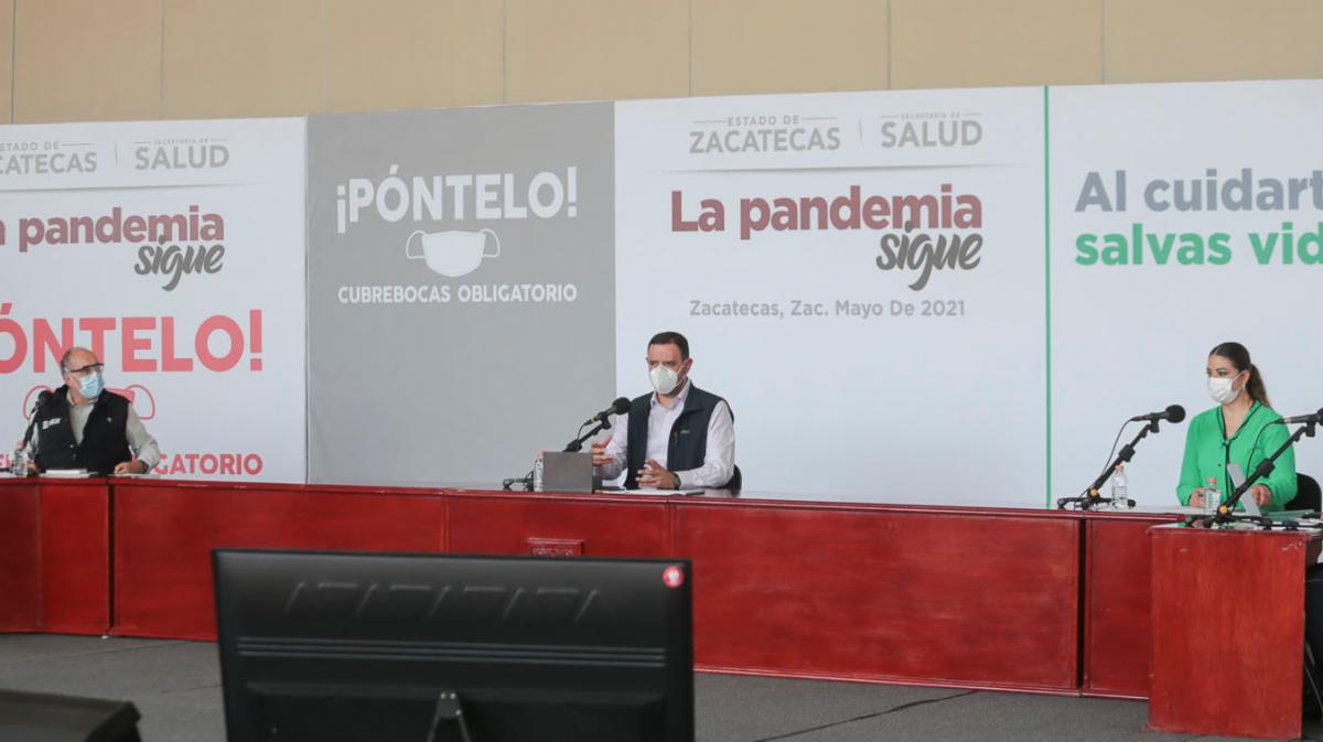 Al presentar el Reporte Estadístico del COVID-19 en Zacatecas, el Gobernador informó que, a 438 días de la pandemia, se han realizado 65 mil 760 pruebas, de las que 30 mil 556 han sido positivas, 34 mil 991 negativas y 213 están pendientes; ha habido 2 mil 962 defunciones, 27 mil 267 personas sanaron y 346 están activas.