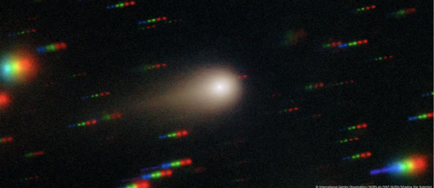 Las imágenes captadas por el telescopio Gemini Sur, en el Cerro Pachón, en los Andes chilenos, muestran que 3I/ATLAS presenta todas las características típicas de un cometa común: una coma, una cola antisolar y un característico color verde producto de la emisión de carbono diatómico, o gas cianógeno, como explica el investigador científico Bryce Bolin a Universe Today.