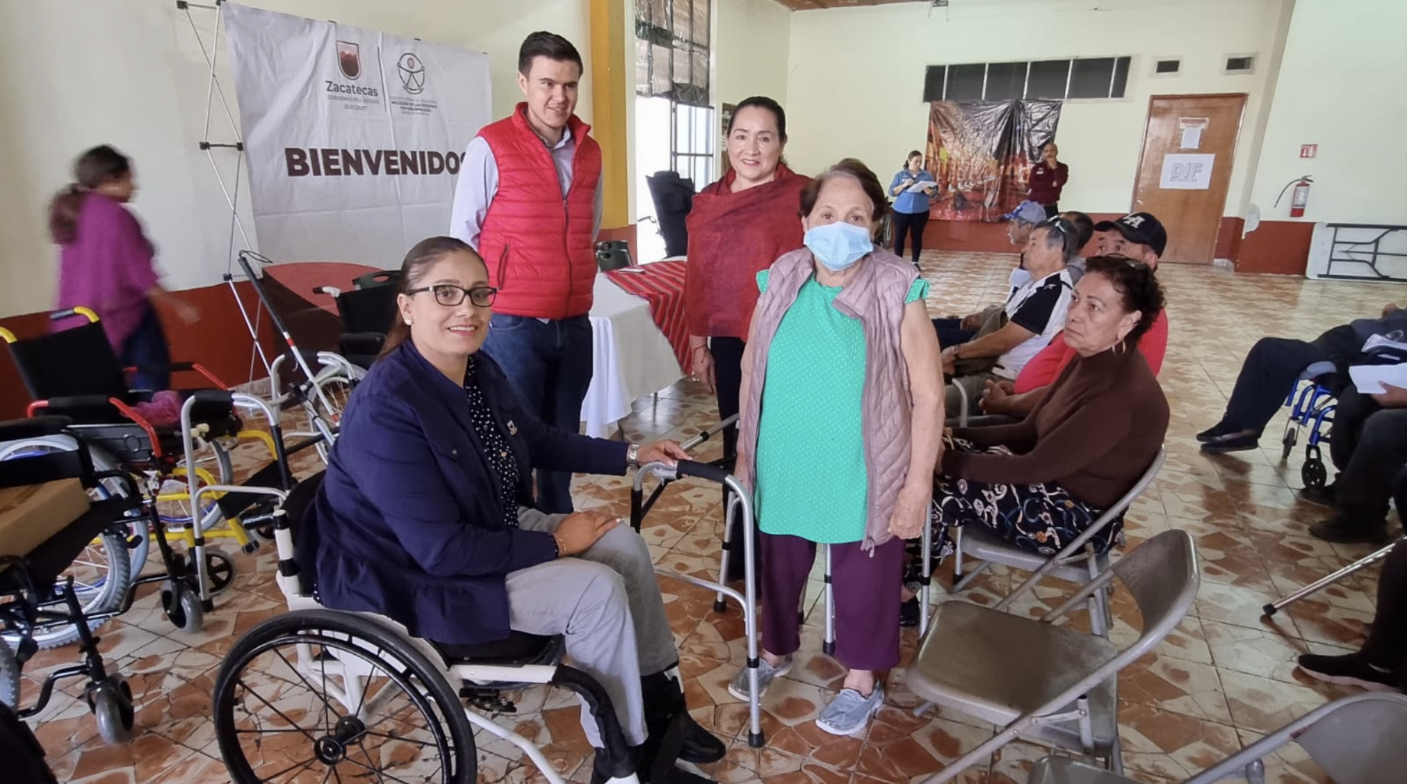 En el evento, 31 personas con discapacidad se beneficiaron con cuatro sillas de ruedas, tres bastones blancos, cuatro andaderas, tres sillas de ruedas tipo PC (parálisis cerebral) y un bastón fijo; además, 12 credenciales y cuatro tarjetones.