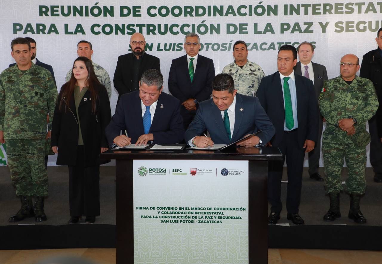 En este tenor, este viernes, el Gobernador David Monreal firmó con su homólogo de San Luis Potosí, José Ricardo Gallardo Cardona, un convenio de colaboración para reforzar, en las zonas limítrofes de ambos territorios, la coordinación de estrategias en materia de seguridad y combate a la delincuencia.