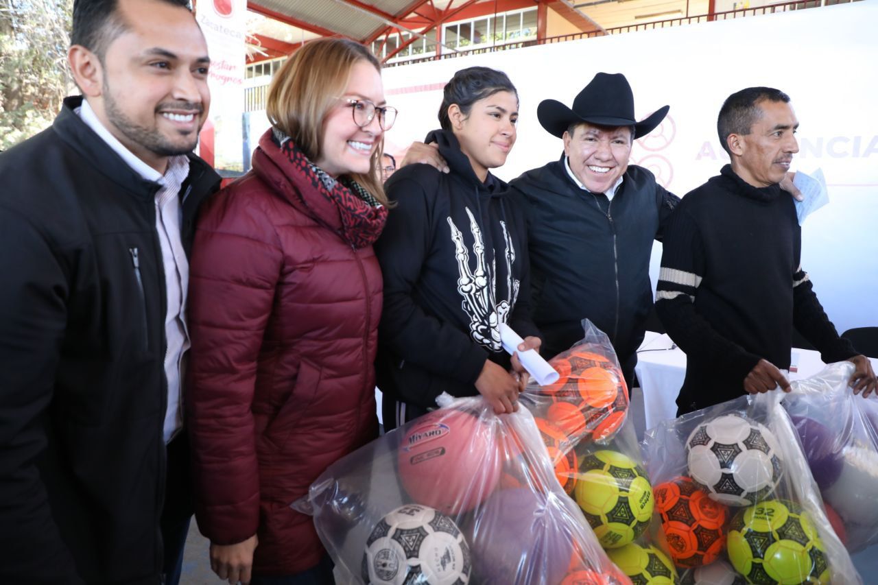 Juan Aldama, Zac., 14 de febrero de 2023.- Tras asumir compromisos de mejorar calles y caminos de Juan Aldama, reforzar la infraestructura educativa y de salud, mejorar las condiciones de vivienda, así como entregar una ambulancia y aparatos para personas con discapacidad, el Gobernador David Monreal Ávila llevó bienestar y progreso al municipio de Juan Aldama.