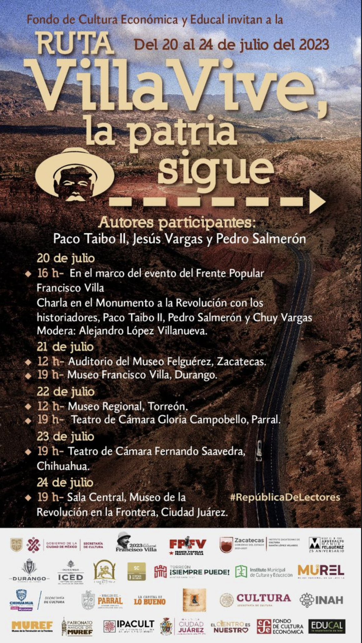 Es el Fondo de Cultura Económica (FCE), junto con los gobiernos estatales y municipales, quien organiza la serie de actividades para recordar la figura del Centauro del Norte, a través de esta ruta que conmemora 100 años del asesinato del General Francisco Villa, ocurrido en Parral, Chihuahua.