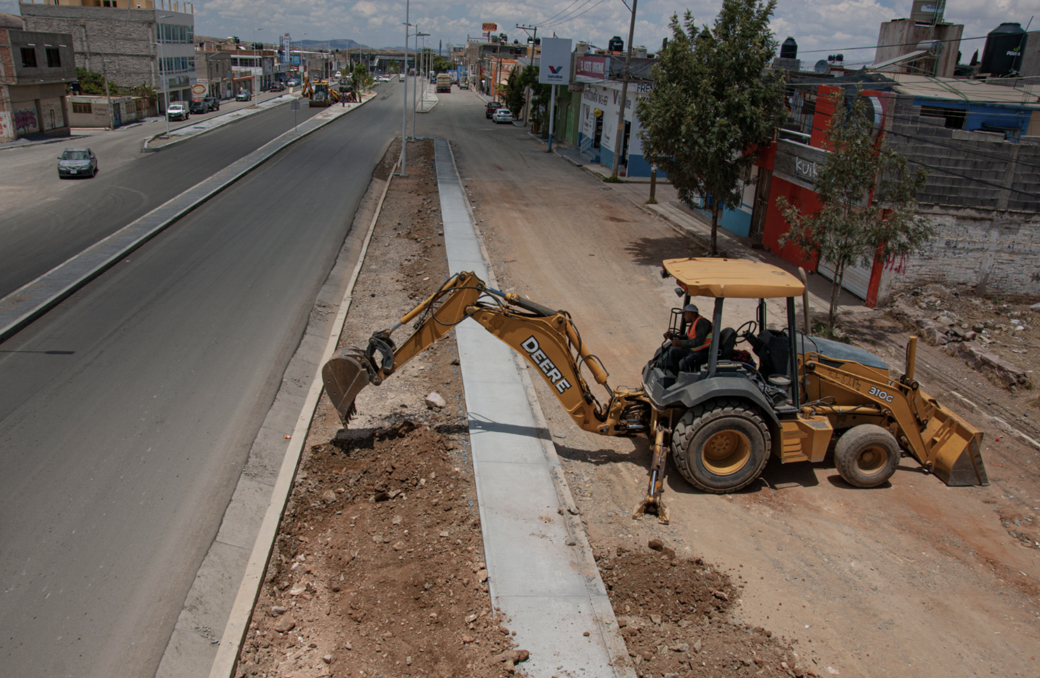 El Secretario de Obras Públicas, Guillermo Carrillo Pasillas, compartió que, al momento, la obra ya cuenta con la construcción de guarniciones, banquetas, camellón central y luminarias, adecuación y construcción de puentes peatonales.