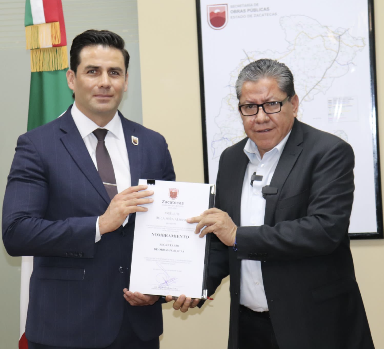 Zacatecas, Zac., 29 de septiembre de 2023.- Para dar continuidad y reforzar el trabajo en materia de infraestructura, el Gobernador David Monreal Ávila nombró a José Luis de la Peña Alonso como Secretario de Obras Públicas (SOP), y a Luz Eugenia Pérez Haro como titular de la Secretaría de Desarrollo Urbano, Vivienda y Ordenamiento Territorial (Seduvot).