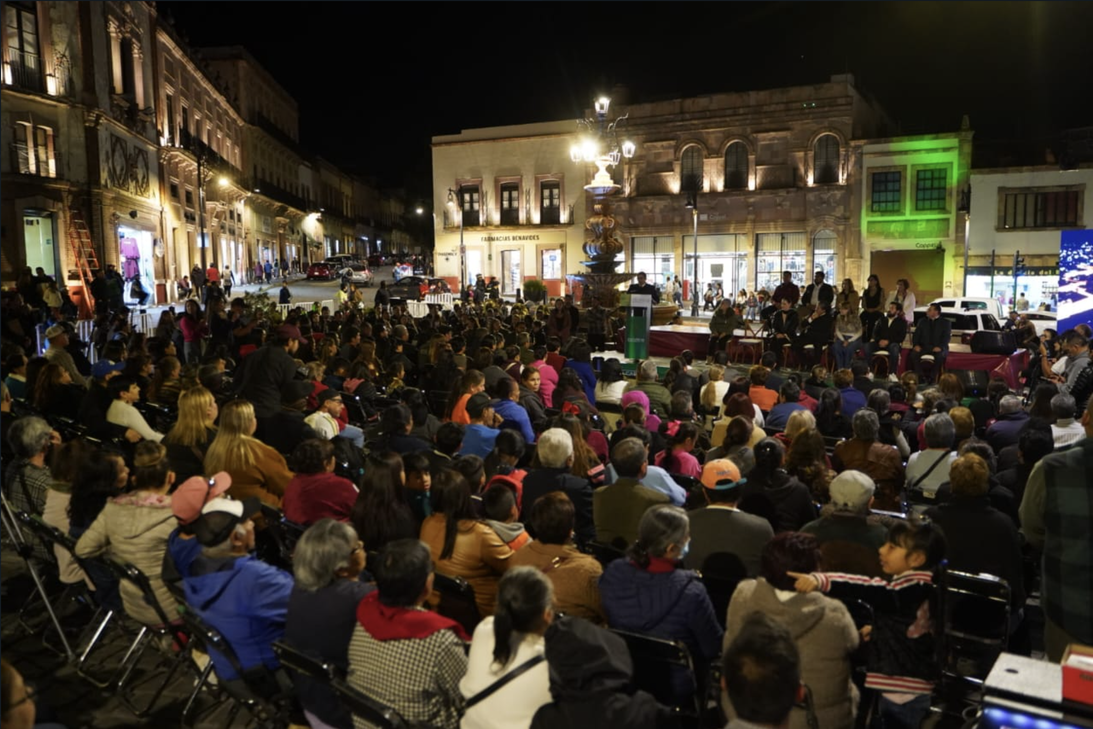 En el marco del encendido de las nuevas luminarias, el Gobernador aprovechó para anunciar que se realizará un censo en el primer cuadro del Centro Histórico para iniciar con un programa de embellecimiento de fachadas en un esquema peso a peso.