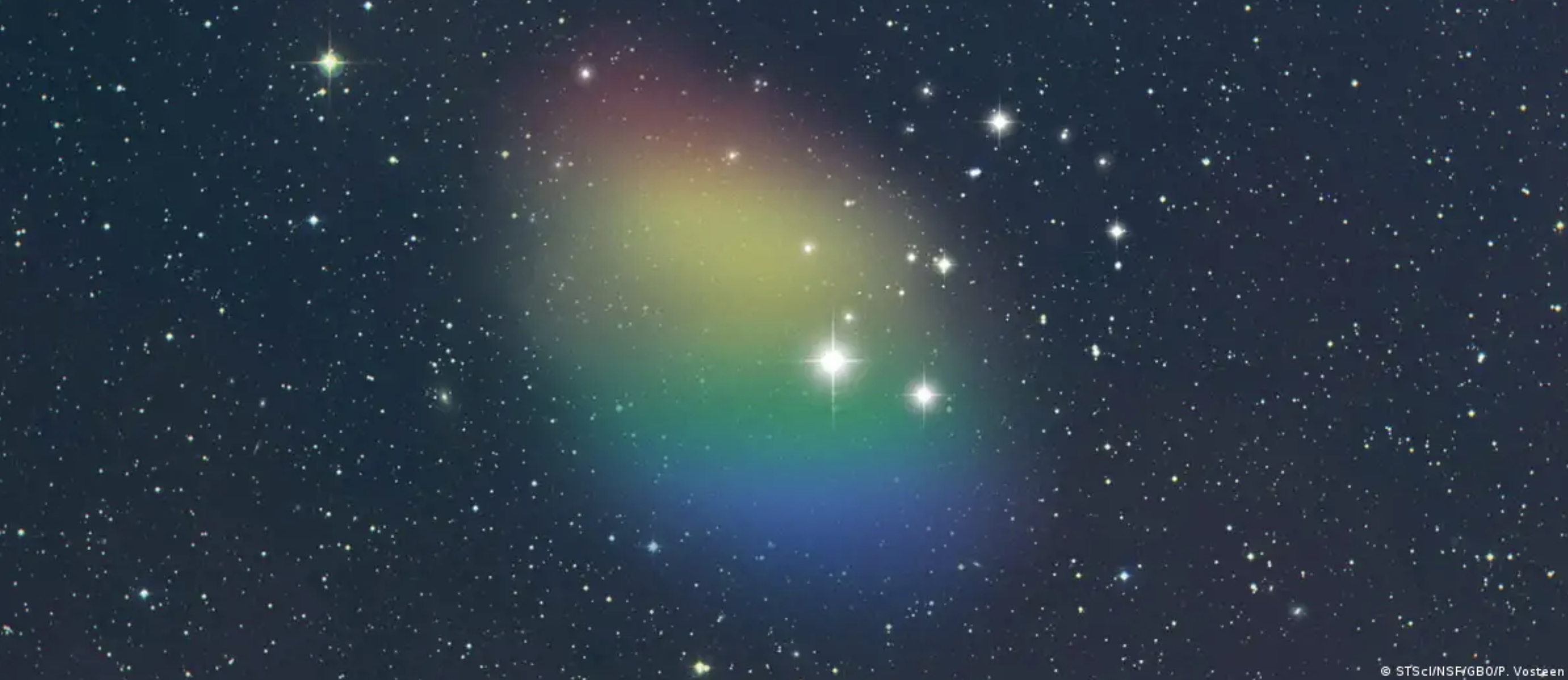 Un inesperado giro del destino llevó a los científicos del Telescopio Green Bank (GBT) a un hallazgo revolucionario. "El GBT se apuntó accidentalmente a las coordenadas incorrectas y encontró este objeto", reveló Karen O'Neil, científica senior del Observatorio Green Bank. Este objeto, designado como J0613+52, se encuentra a 270 millones de años luz de distancia y es notable por su aparente falta de estrellas, apareciendo solo como una neblina de gas entre estrellas, típica de galaxias normales pero flotando solitaria en el espacio.